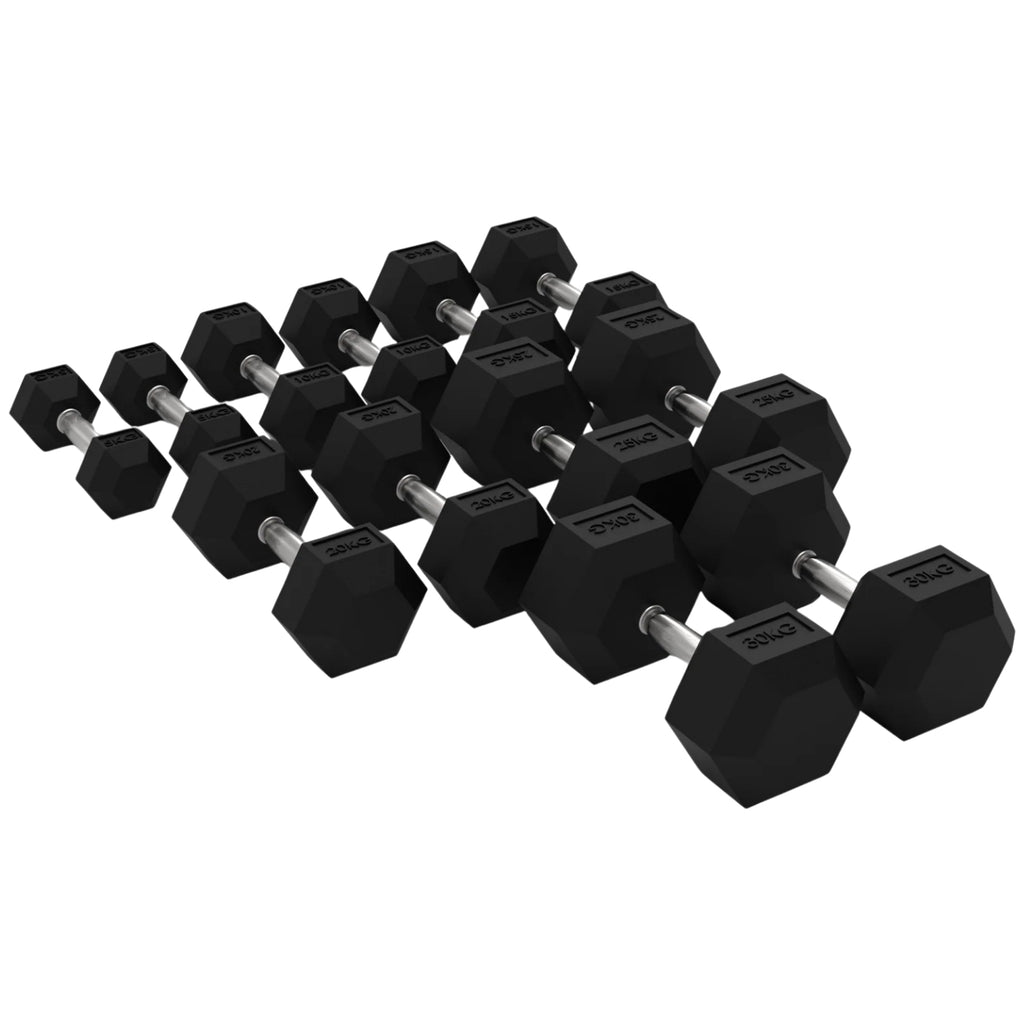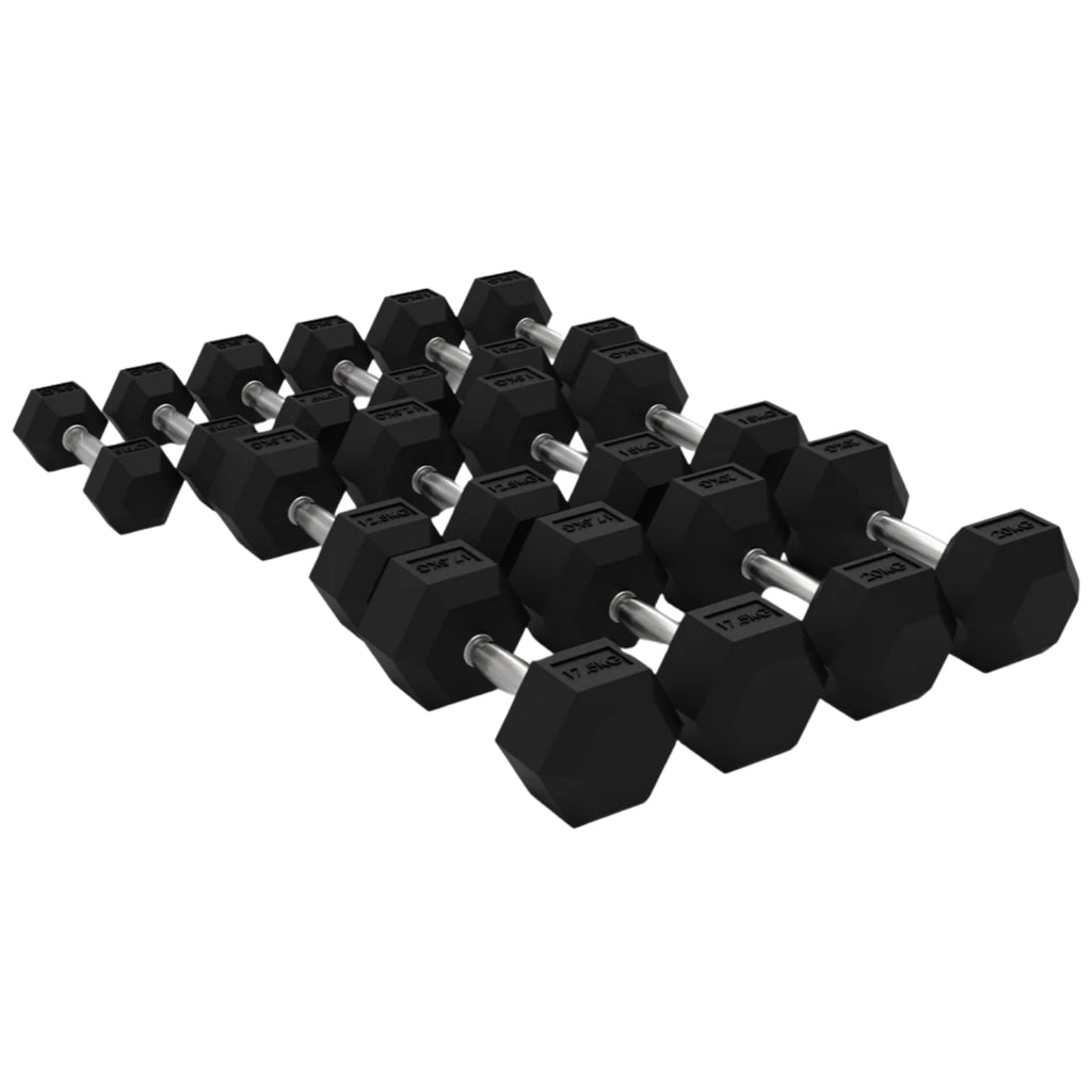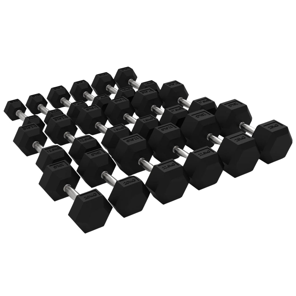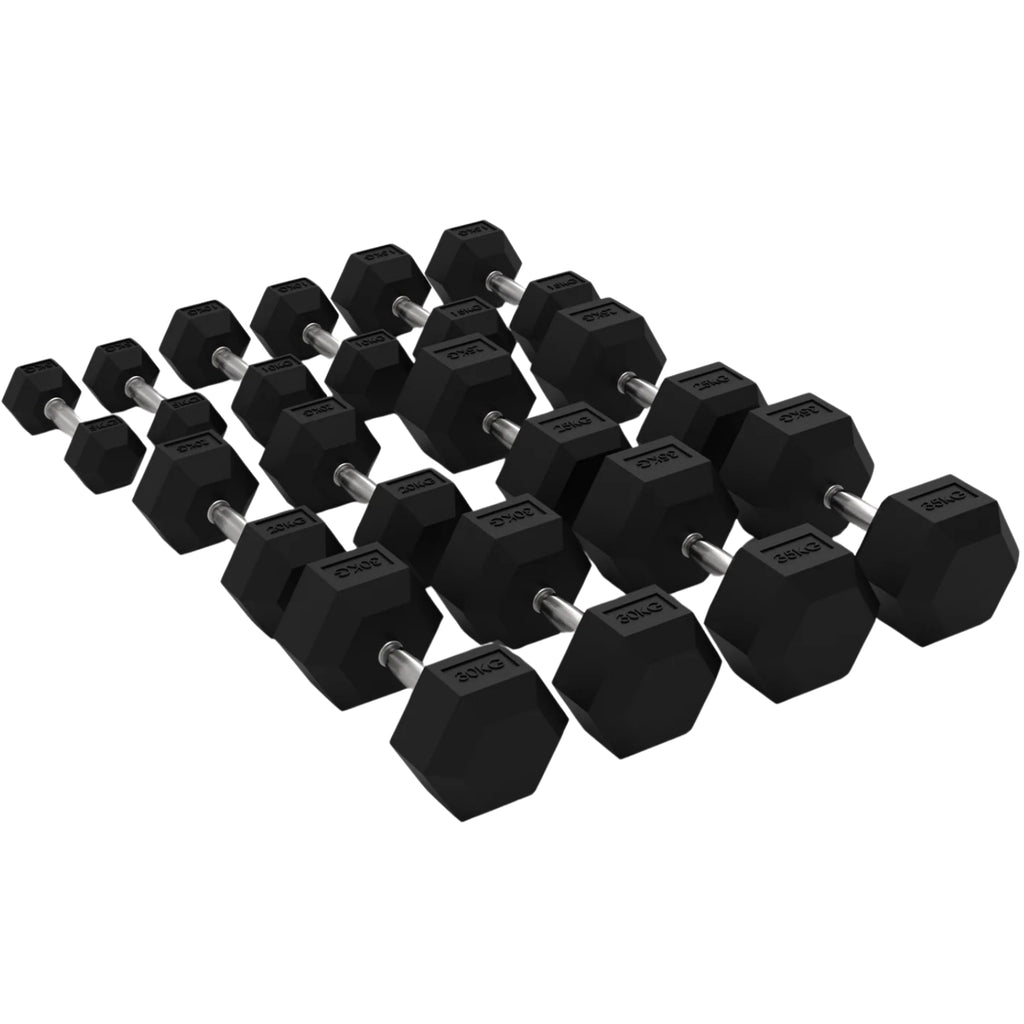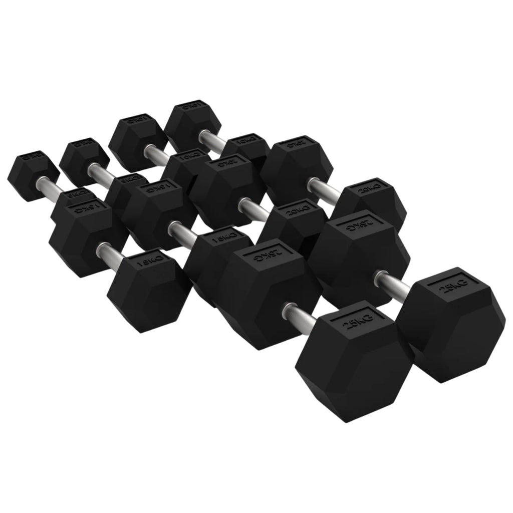 The Rival Hex Dumbbell Sets offer a range of weights from 5kg up to 35kg in increments of 2.5kg.